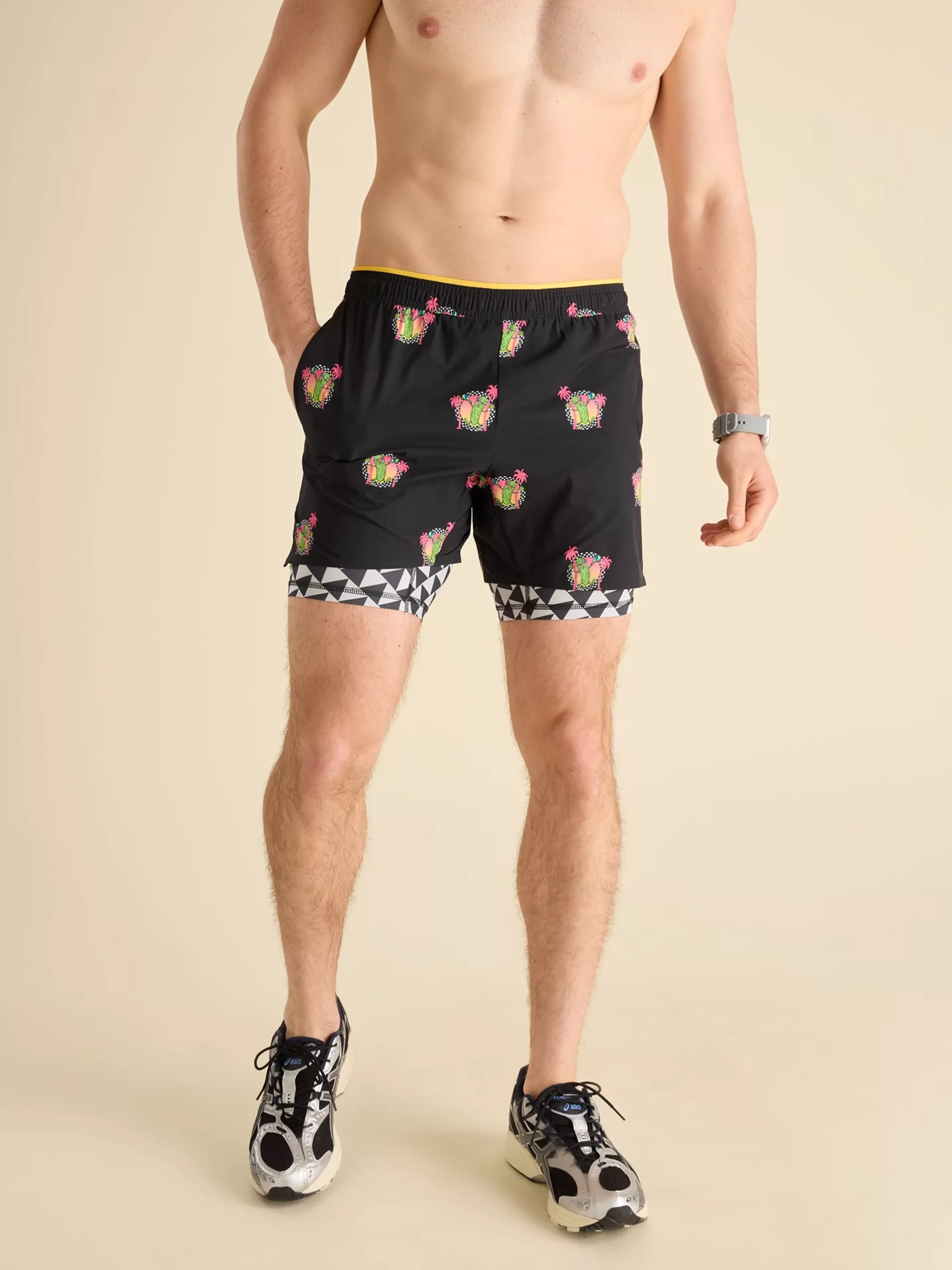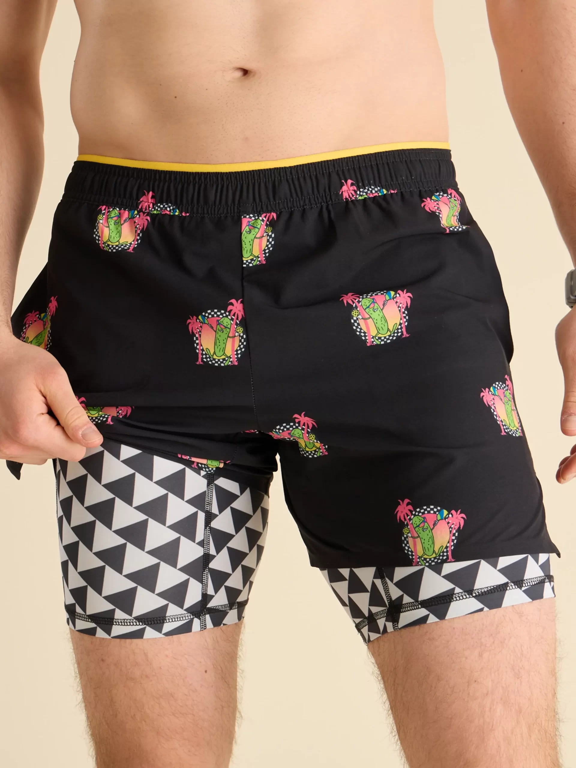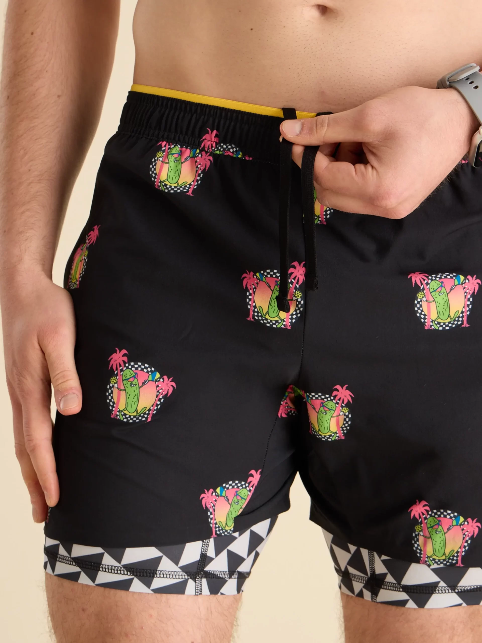 Chubbies Men’s Tops The Neon Racers | Black Pickleball Pickle & Black & White Check Liner